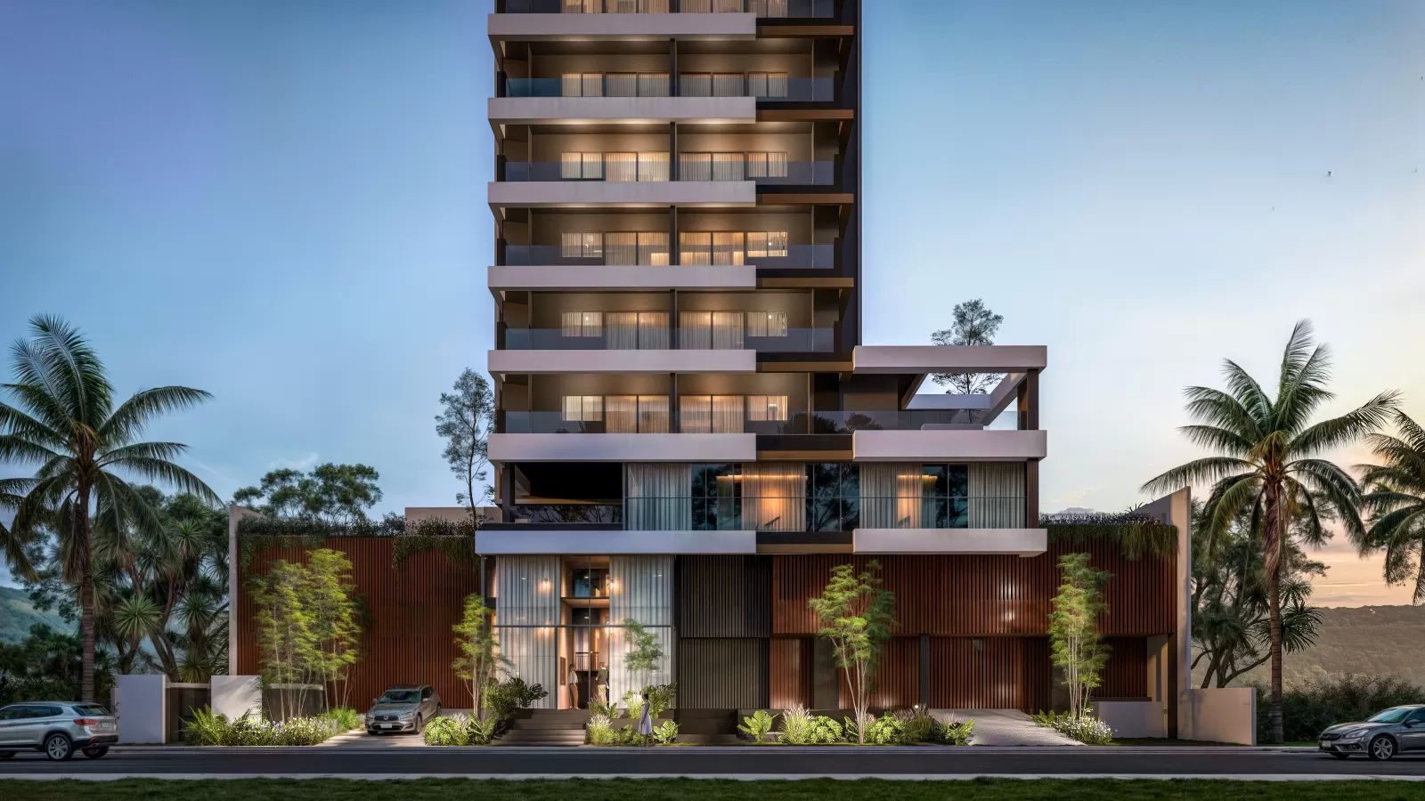 Este projeto nasceu com a intenção de trazer linhas puras, assimétricas e desenho minimalista, que formatam o conceito atemporal. Os elementos utilizados nas fachadas, como lâminas que fazem a ligaça da torre até o nível do térreo, entrada com pé-direito duplo, elementos ripados e integração total com o condomínio, formatam a preocupação em entregar um empreendimento singular e com forte personalidade.