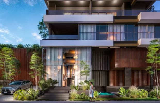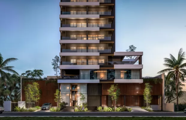 A sua arquitetura é pensada para se destacar de maneira sutil, porém impactante. Com linhas contemporâneas e uma estrutura que alcança o ponto mais alto dentro do Riverside Residence, ele se eleva como um ícone visual que harmoniza com a paisagem, priorizando a amplitude, a iluminação natural e a ventilação cruzada em cada unidade.